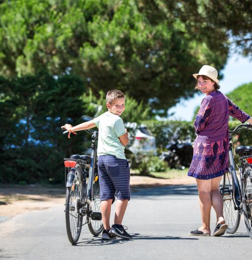 Auf der Île de Ré ist das Fahrrad König. Hier kann man ausgedehnte Ausflüge in aller Sicherheit auf Wegen unternehmen, die es ermöglichen, die Insel in einem sehr sanften Tempo zu durchqueren. Nur einen Katzensprung vom Campingplatz entfernt und unbedingt sehenswert: das Dorf La Flotte-en-Ré mit seinem atypischen Markt. Weiter entfernt liegt der Phare des Baleines mit Blick auf das Meer, und natürlich La Rochelle.